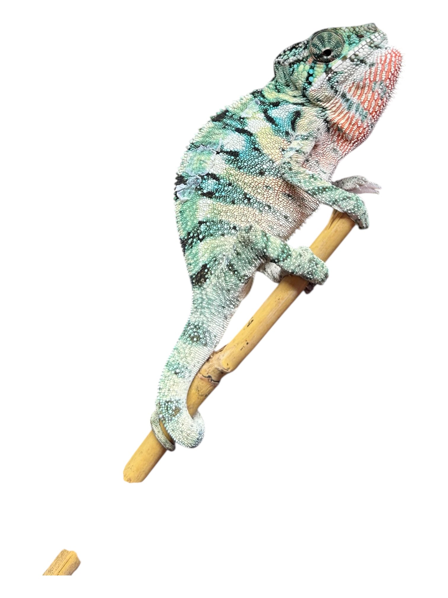 The panther chameleon (Furcifer pardalis) is a species of chameleon which originates from and is commonly found in the eastern and northern parts of Madagascar.