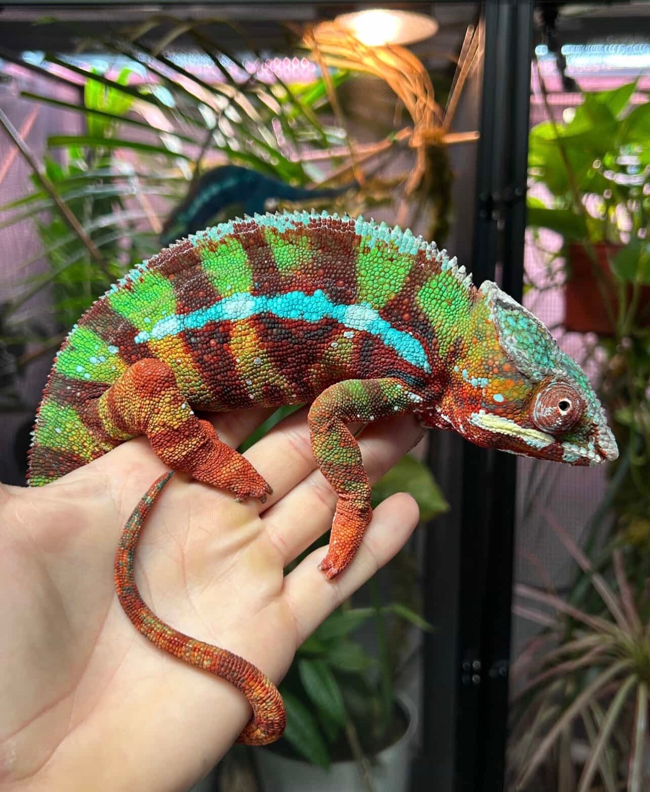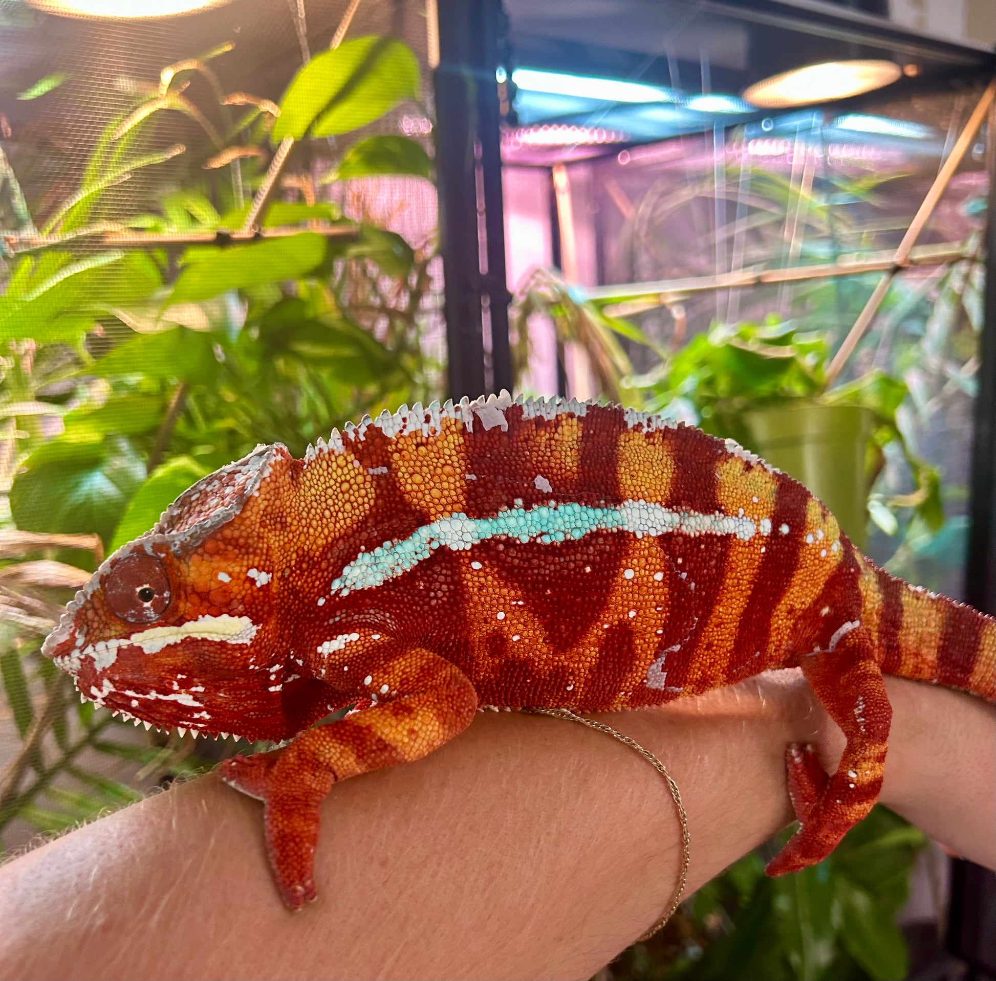 Son of Copperfield (pictured in 3rd & 4th slide) 3 Month old Cap Est x Ambilobe Male Panther Chameleon.