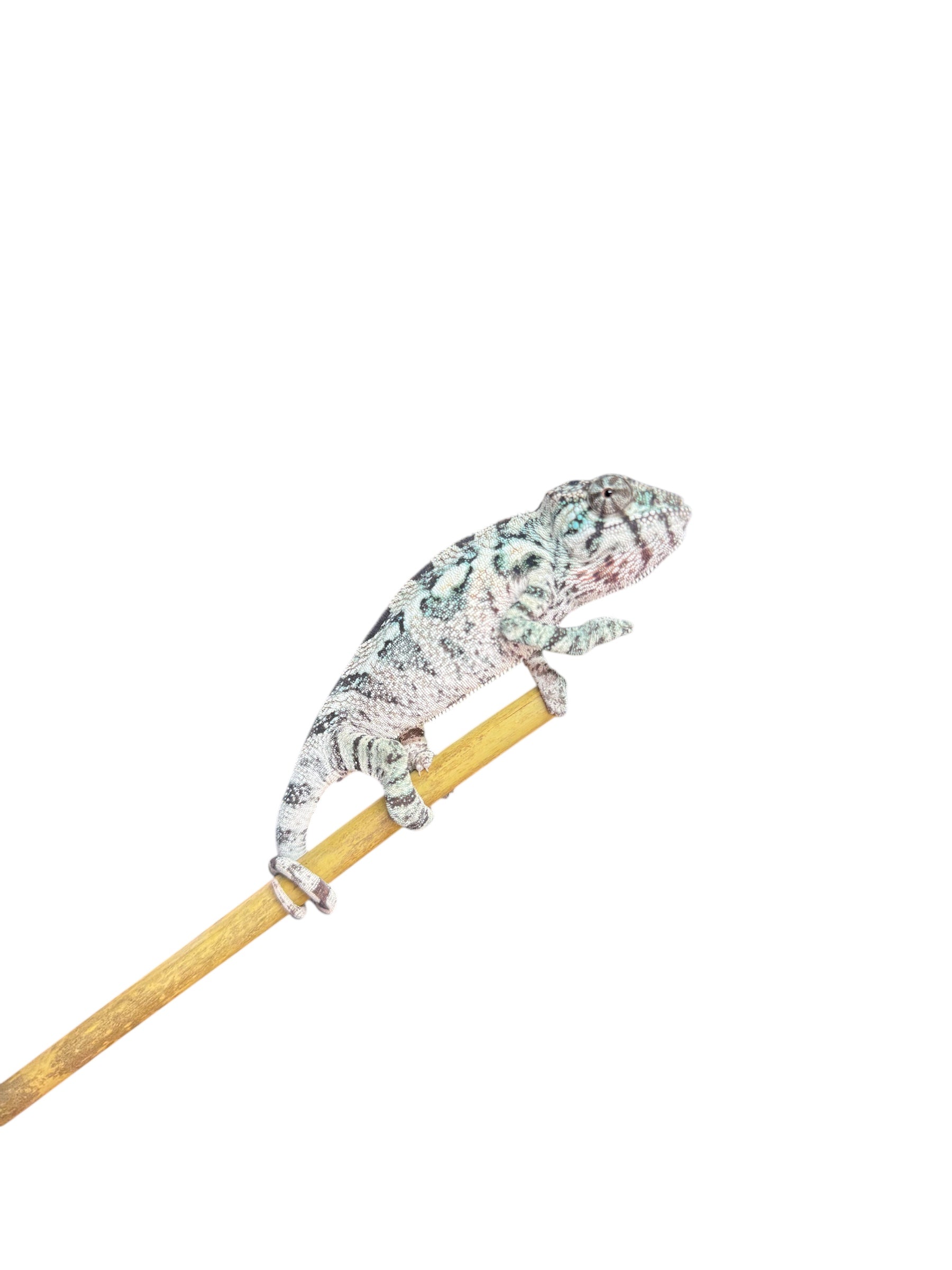 High-quality female Yellow Body Blue Bar panther chameleon carrying strong yellow and blue genetics. While females naturally display softer coloration than males, this animal shows excellent genetic influence that can translate into vibrant offspring when paired correctly. Clean patterning, solid structure, and the kind of lineage that breeders look for when building consistent yellow-bodied, blue-bar projects. JE-YBF05